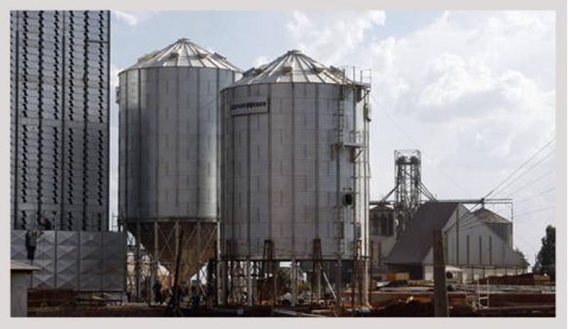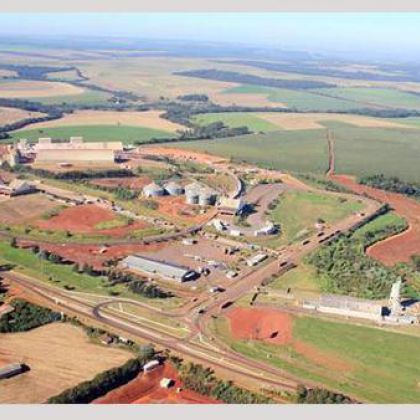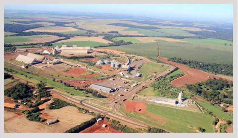 Terminal para carga e descarga de grãos, composto por duas moegas rodoviárias, moega ferroviária, silos de expedição rodoviário e ferroviário, poço de elevador, sala de controle e compressores, além de balanças rodoviária e ferroviária.